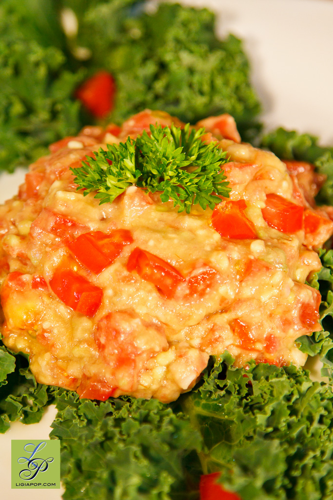 Avocado se va trasforma in pasta si se amesteca cu toate celelalte ingrediente. E superb si se poate asemana cu gustul salatei de vinete. Se poate manca pus pe o frunza de varza, salata, paine, cu felii de ardei, ciuperci sau ca atare. La reteta se pot adauga diverse ingrediente precum ardeii rosii, galbeni sau cei iuti, masline, seminte de in sau floarea soarelui. Trebuie consumat imediat deoarece isi poate schimba culoarea si gustul daca este lasat chiar si 10 minute.