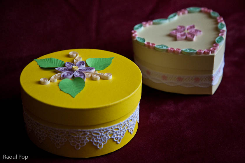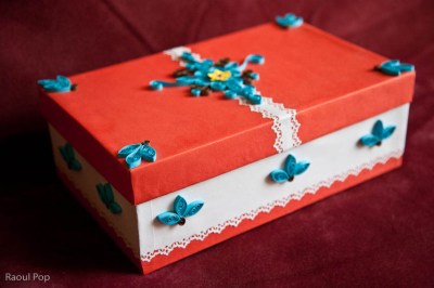 Cutii ornate in stilul filigran avand broderie de matase si bumbac pe margine