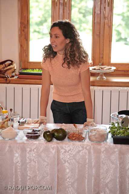Dupa cum veti vedea si in scurtele secvente video de mai jos, ne-am simtit ca intre vechi prieteni chiar daca nu ne cunoasteam toti intre noi, iar oaspetii au fost placut impresionati de gustul delicios ar retetelor fara foc, si chiar a salatelor incercate, din plantutele de ridiche si floarea soarelui. Cativa dintre oaspeti au fost suspiciosi la inceput, insa gustand fiecare reteta in parte, si-au dat seama ca a meritat efortul incercarii. Am demonstrat 6 retete delicioase, care dupa cum am spus, au fost pe gustul pur romanesc al tututor oaspetilor. Piesele de rezistenta au fost atat bomboanele Raffaello, cat si tortul de la final, ornat cu frisca de caju si glazura proaspata de ciocolata.