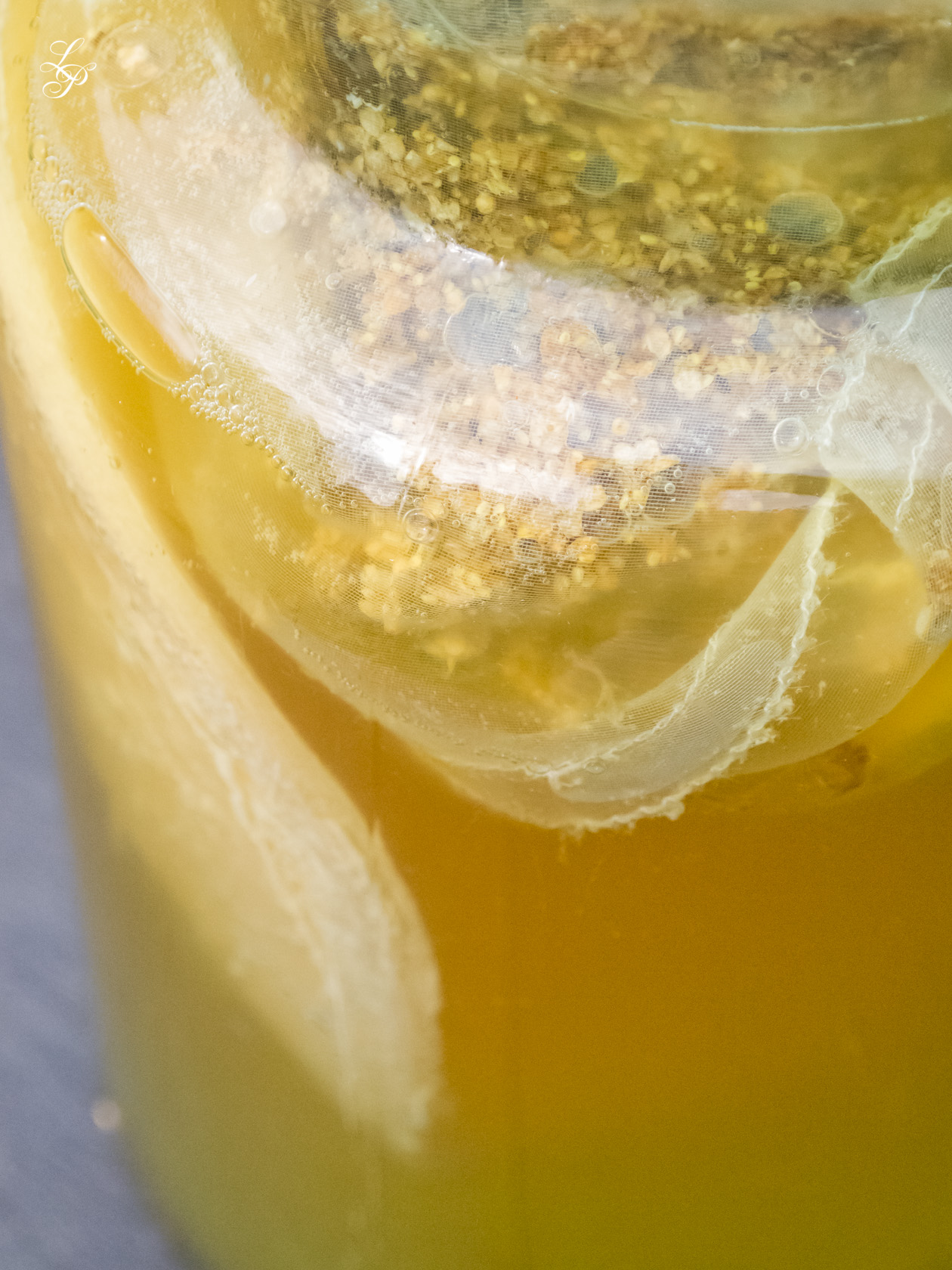 Dupa cum ati vazut in poze, eu pun florile de soc si feliile de lamaie intr-o punga de filtrat si mi se pare cea mai simpla forma de a filtra socata. Cand dorim sa bem, turnam direct din borcan si nu mai plutesc floricele si samburi prin kombu-socata noastra.