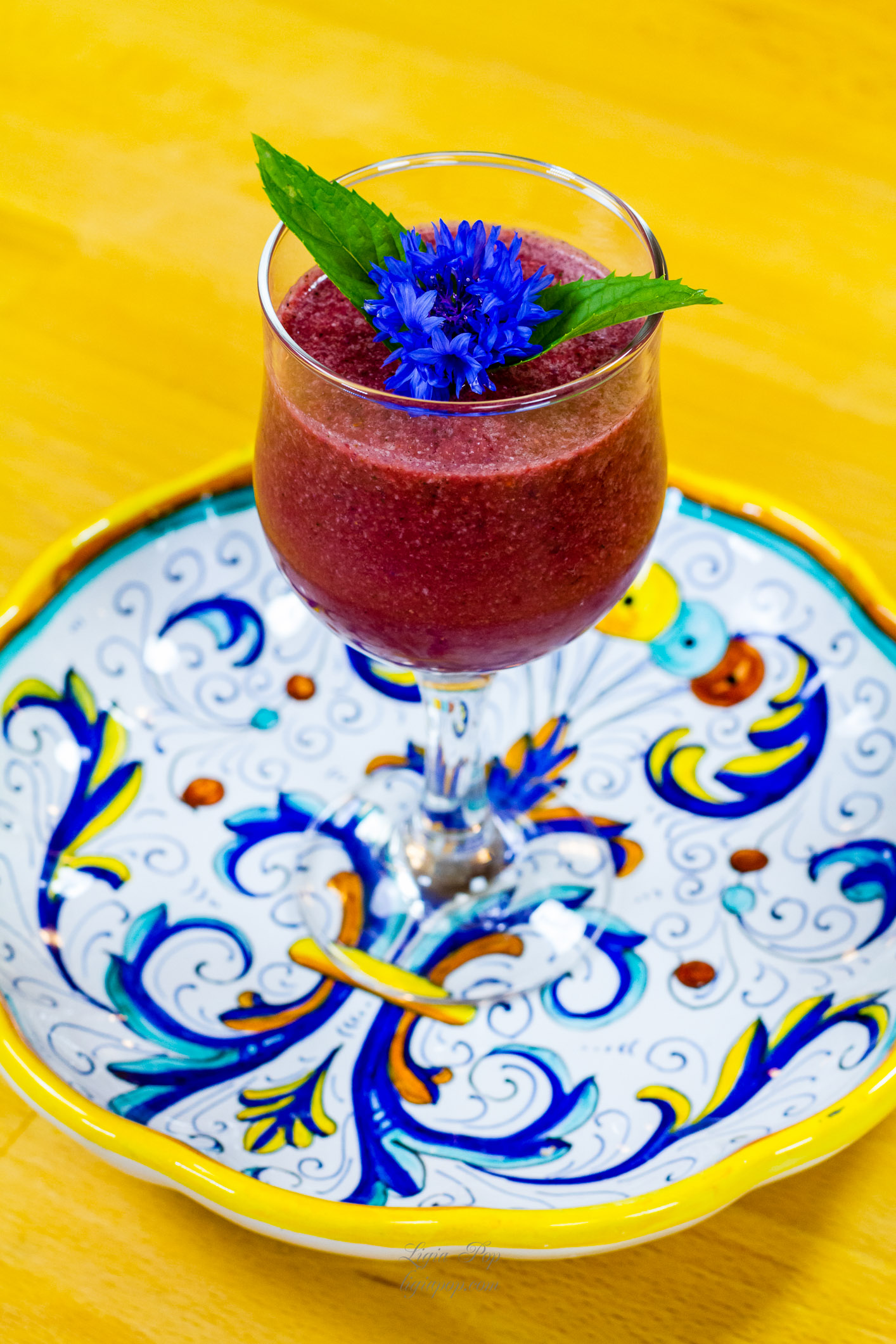 In studio, la prepararea retetei de smoothie din visine si superalimente.