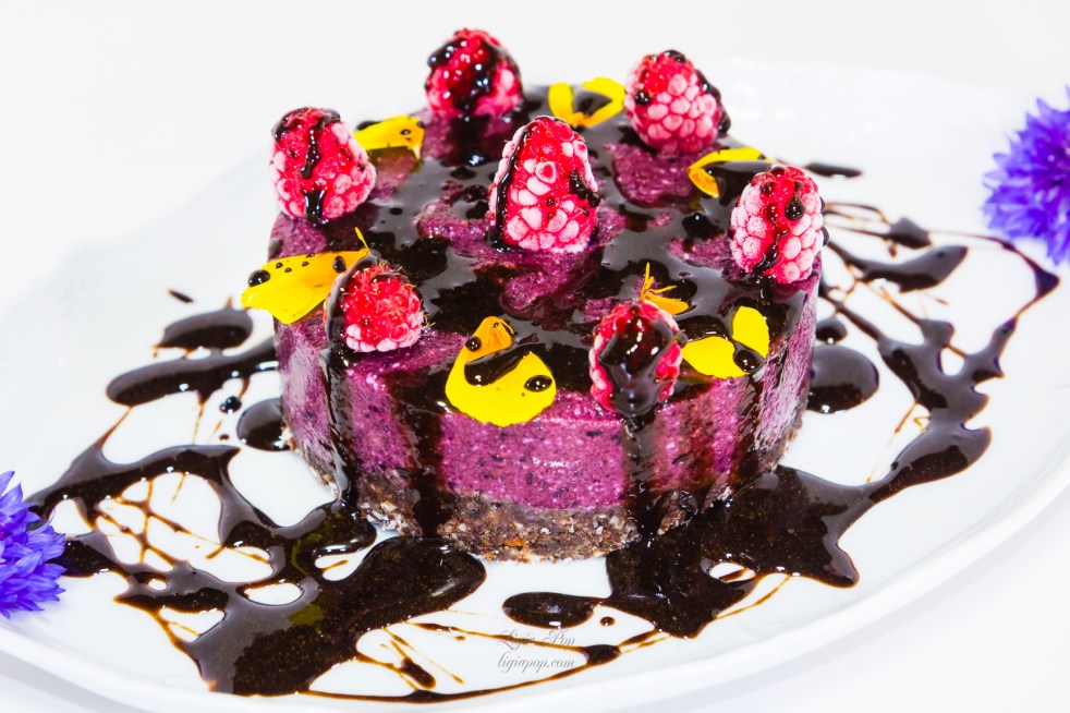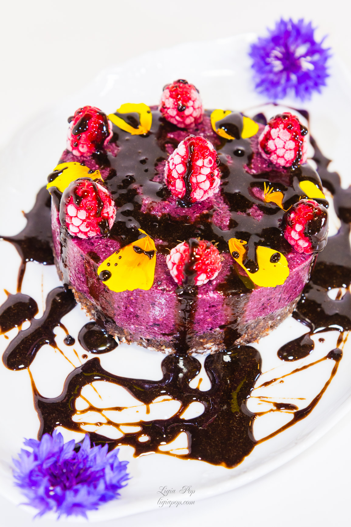 Tort raw cu afine si glazura de ciocolata, fara lapte si oua