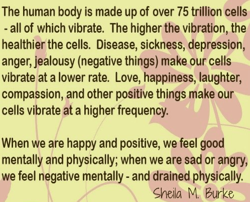 Fiecare stare si chiar „nevinovatele” ganduri ne pot schimba frecventa, ducand-o spre o frecventa de vibratie inalta – un gand care ne da stare de bine sau frecventa foarte slaba – un gand suparator, apasator, stare care este un mediu prielnic pentru boli. Aceste frecvente le simtim si noi, spre exemplu cand cineva intra intr-o camera si este suparat sau cand cineva intra voios in camera si aceasta stare este molipsitoare.