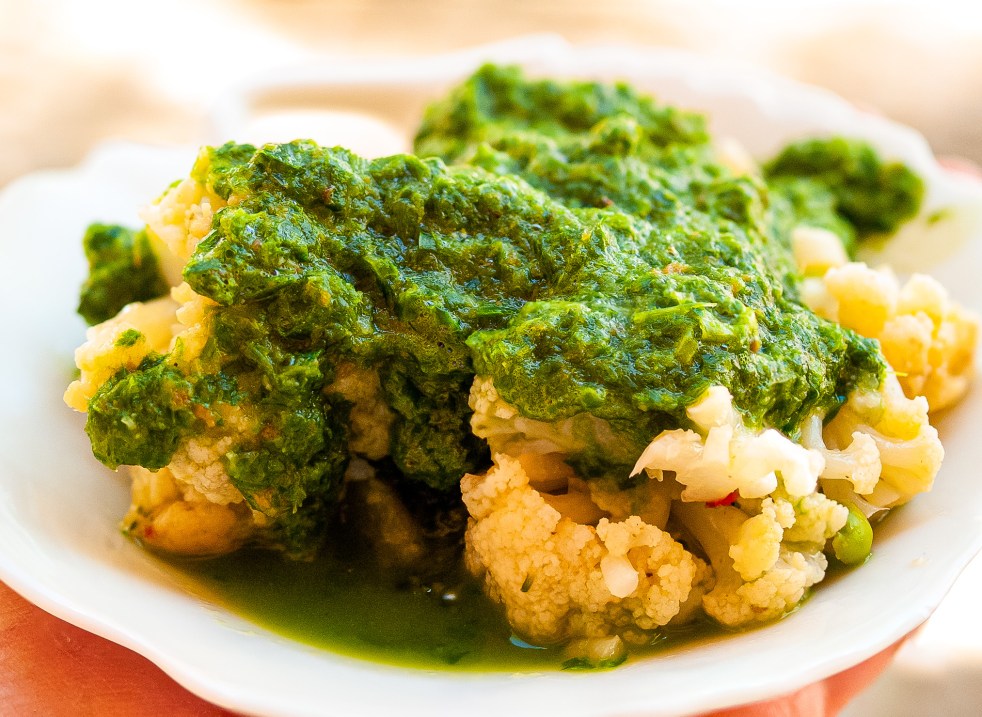 Frunzele se taie cu o foarfeca, pentru a evita procesarea indelungata. Dupa acest pas, toate ingredientele se proceseaza in blender timp de maxim 1-2 minute, pentru a pastra nutrientii intacti. Sosul se poate adauga peste orice mancare traditionala, orice salata, legume la abur sau mancare de legume. Noi am mancat cu conopida, broccoli, morcovi si kale facute la abur. Un deliciu!