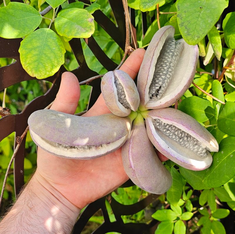 Vita de ciocolata, o planta agatoare cu flori minunate si fructe cu gust de ciocolata si budinca.
