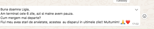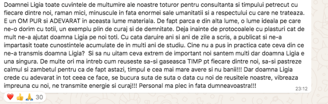 Pun aici doar cateva din testimonialele primite in ultimele 2 luni, fiindca primesc zilnic – dati click pe sageata de navigare, fiindca sunt 28 marturii puse aici si am sute de marturii pentru cine mai doreste sa intre pe grupurile mele.