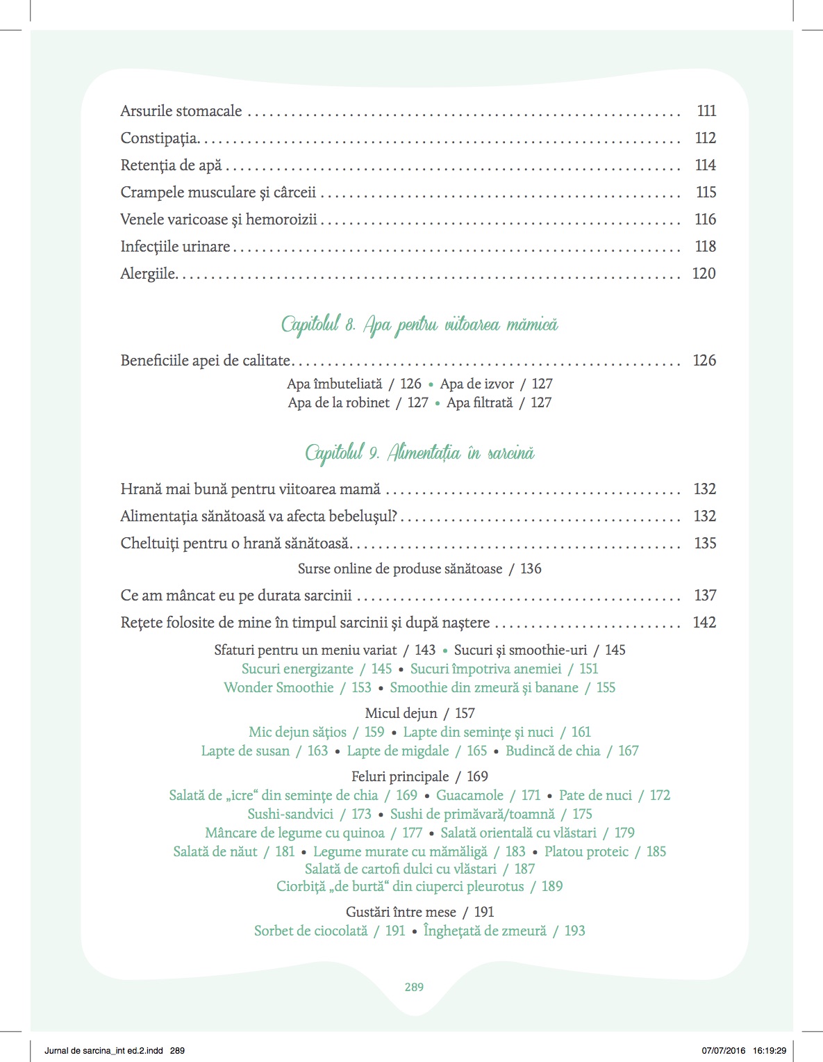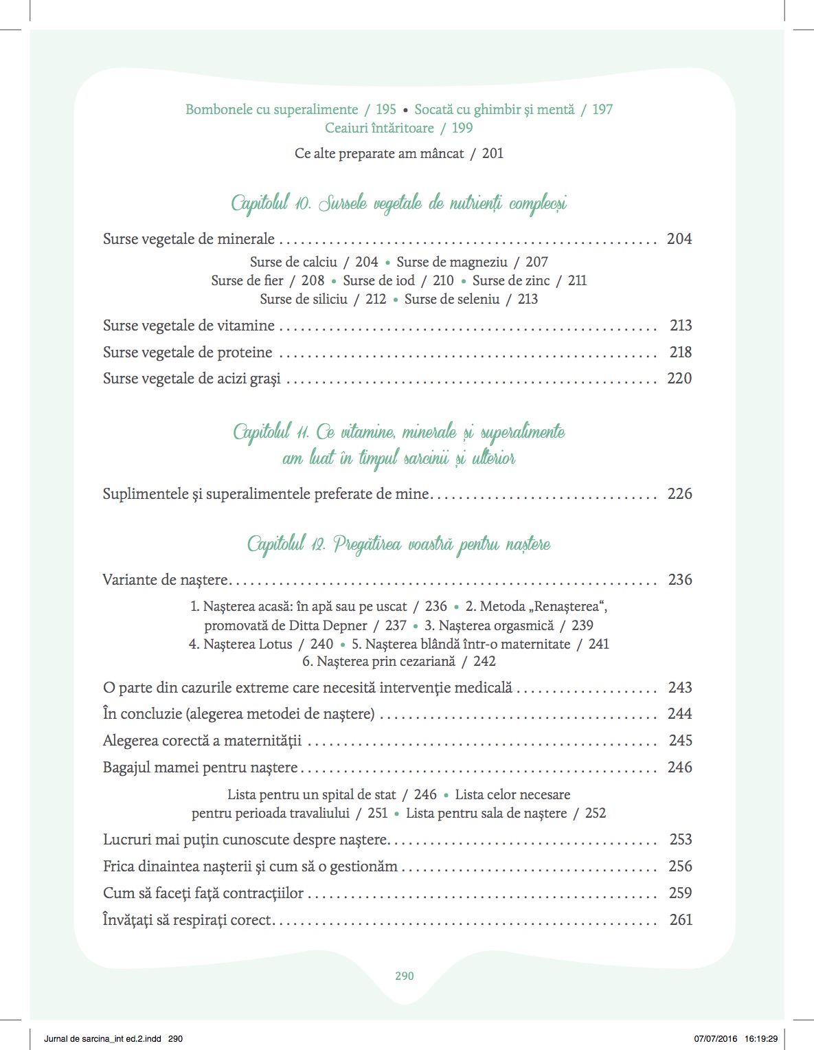 Cartea are 296 de pagini, a fost reorganizată mai bine pentru a doua editie si este un îndrumar cât se poate de detaliat pentru o sarcină si o naștere naturală si pentru un bebe sănătos si fericit. Aceasta nu este dedicată doar vegetarienilor, veganilor sau raw veganilor, ci se adresează publicului larg – tuturor celor care își doresc să aibă parte de o sarcină liniștită si de un copil sănătos.